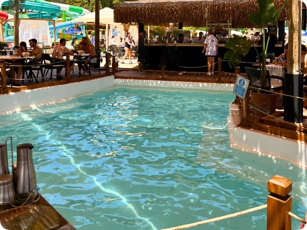 All pools are included in the entrance ticket. Depending on the ticket package, services such as food, beverages, and sun loungers may also be included.
