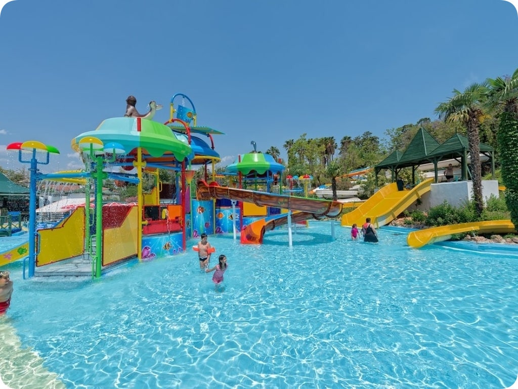 A world of fun and freshness awaits you at Antalya Waterhill! Unforgettable moments for all ages await you with the Cave Pool, which offers a sense of discovery with its natural atmosphere, the Wave Pool, which offers the thrill of waves, and the Kids Pool, designed specifically for the little ones.