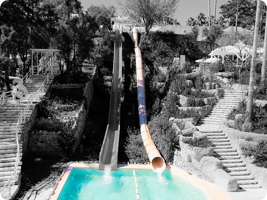 The Twister Slide is a slide full of twists and turns. Visitors are thrown rapidly from side to side, constantly changing direction throughout the descent. Its dynamic design is both fun and full of surprises.