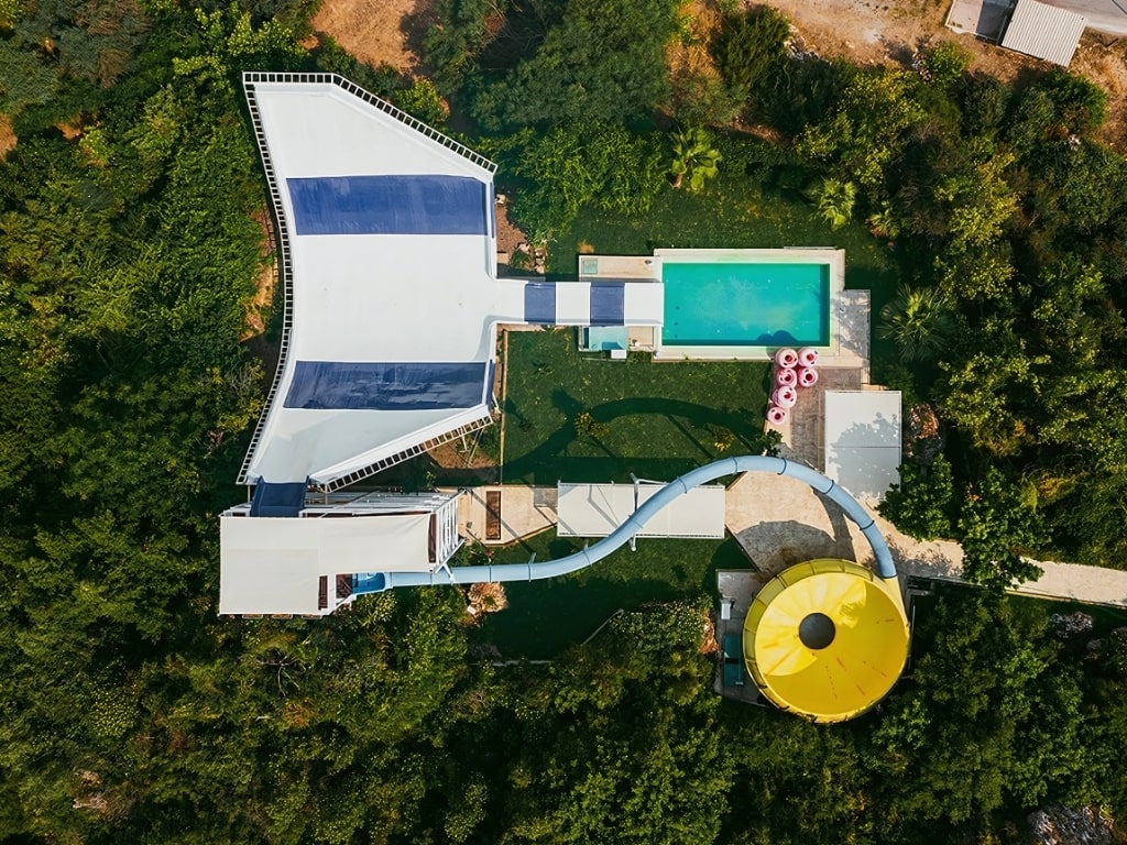 The Freefall Slide stands out with its structure that creates the sensation of a vertical freefall. This slide, which offers a virtually free-falling descent from top to bottom, offers an unforgettable, heart-pounding experience.