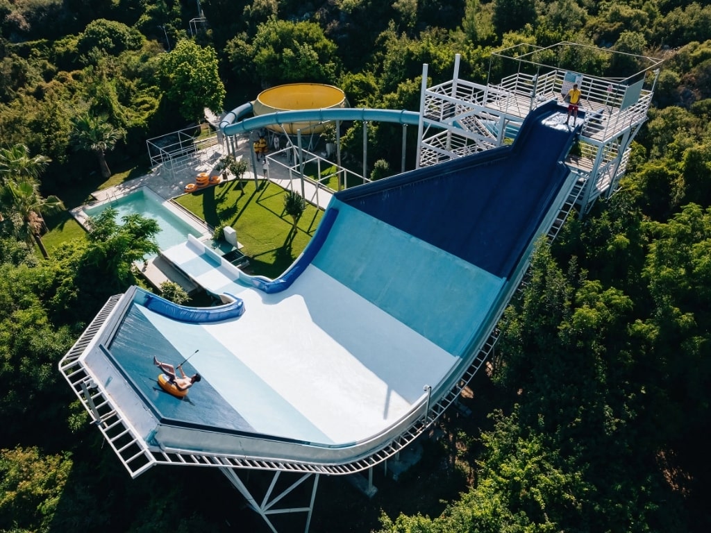 Kamikaze is a favorite of adrenaline junkies. This slide, which feels like a freefall from a height, will take you on a breathtaking experience of body-powered speed.